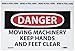 - Header "DANGER" and Legend "MOVING MACHINERY KEEP HANDS AND FEET CLEAR"