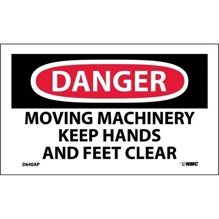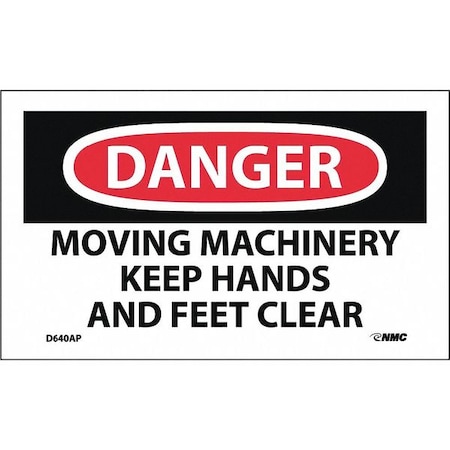NMC D640AP OSHA Sign, Legend "DANGER - MOVING MACHINERY KEEP HANDS AND FEET CLEAR", 5" Length x 3" Height, Pressure Sensitive Vinyl, Black/Red on White (Pack of 5)