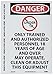 | Feature | Header "DANGER" and legend "ONLY TRAINED AND AUTHORIZED PERSONNEL..." with UNDER 18 Slash graphic |