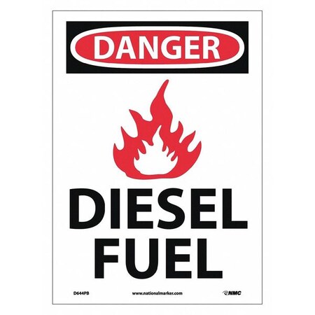NMC D644PB OSHA Sign, Legend "DANGER - DIESEL FUEL" with Graphic, 10" Length x 14" Height, Pressure Sensitive Adhesive Vinyl, Black/Red on White