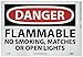 | Feature | Header "DANGER" and Legend "FLAMMABLE NO SMOKING MATCHES OR OPEN LIGHTS" |