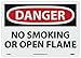 | Feature | Header "DANGER" and Legend "NO SMOKING OR OPEN FLAME" |