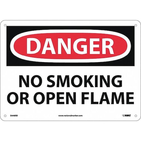 NMC D648RB OSHA Sign, Legend "DANGER - NO SMOKING OR OPEN FLAME", 14" Length x 10" Height, Rigid Plastic, Black/Red on White