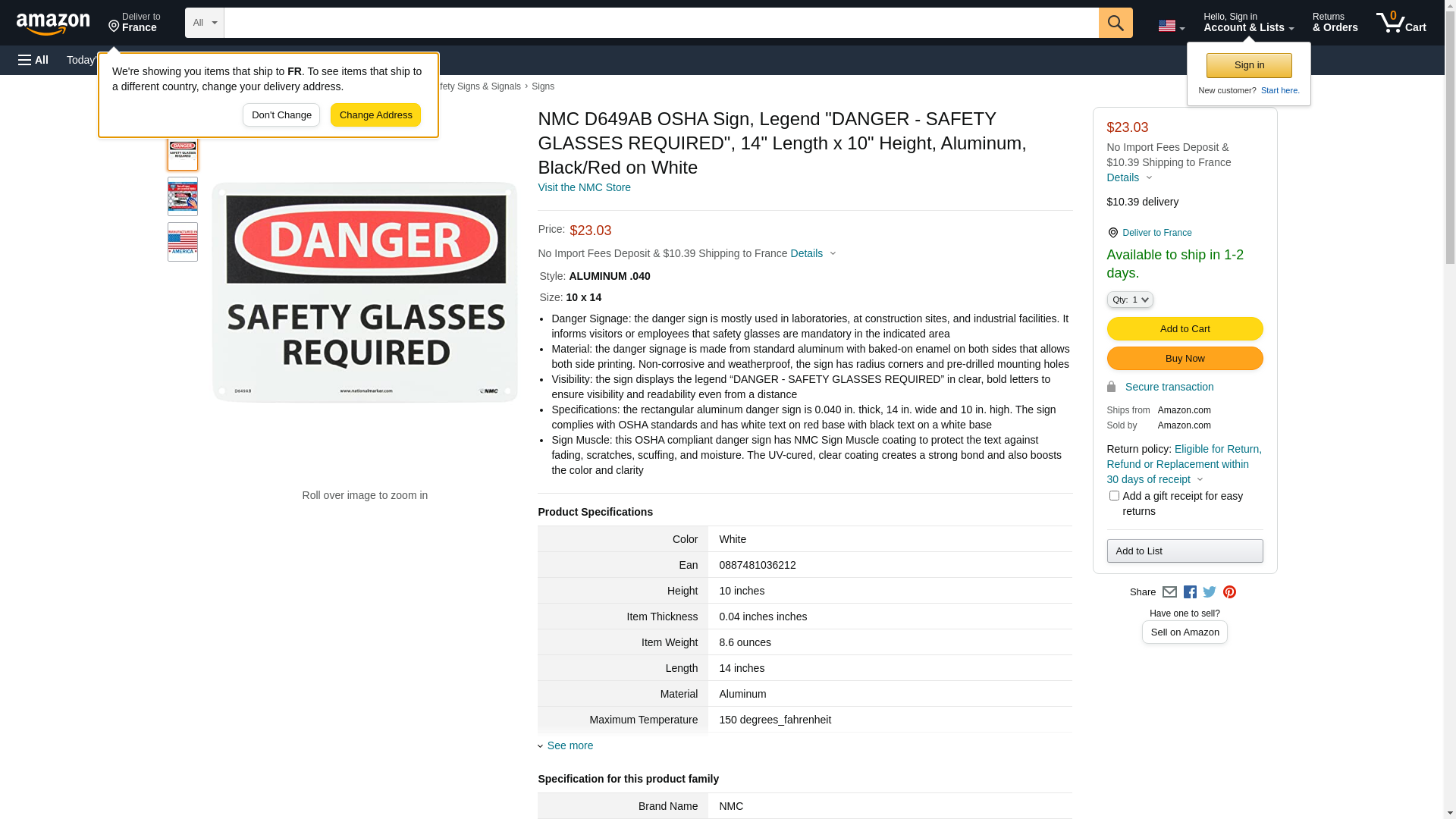 - Specifications: the rectangular aluminum danger sign is 0.040 in. thick, 14 in. wide and 10 in. high. The sign complies with OSHA standards and has white text on red base with black text on a white base