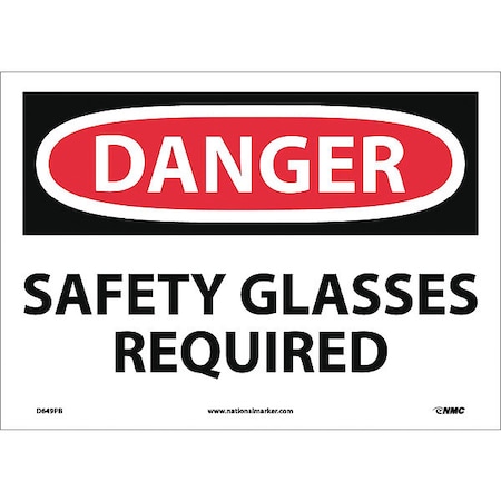 NMC D649PB OSHA Sign, Legend "DANGER - SAFETY GLASSES REQUIRED", 14" Length x 10" Height, Pressure Sensitive Vinyl, Black/Red on White