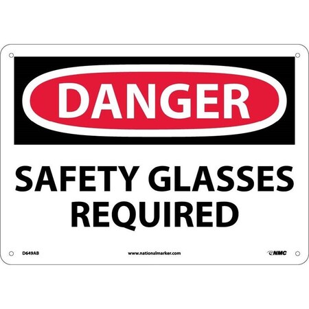 NMC D649RB OSHA Sign, Legend "DANGER - SAFETY GLASSES REQUIRED", 14" Length x 10" Height, Rigid Plastic, Black/Red on White