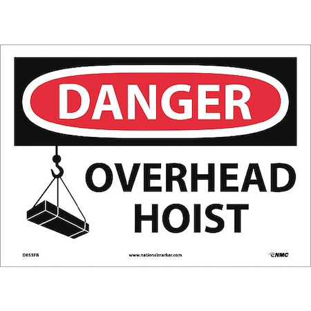 NMC D653PB OSHA Sign, Legend "DANGER - OVERHEAD HOIST" with Graphic, 14" Length x 10" Height, Pressure Sensitive Vinyl, Black/Red on White