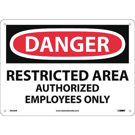 NMC D654AB DANGER - RESTRICTED AREA AUTHORIZED EMPLOYEES ONLY Sign - 14in. x 10in. Aluminum Danger Signage with Black/Red on White Base