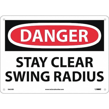 NMC D655RB OSHA Sign, Legend "DANGER - STAY CLEAR SWING RADIUS", 14" Length x 10" Height, Rigid Plastic, Black/Red on White