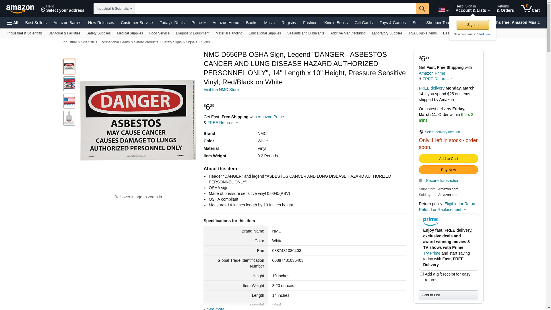 NMC D656PB, OSHA Sign (Pack of 10 pcs)