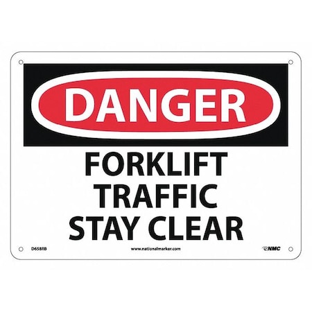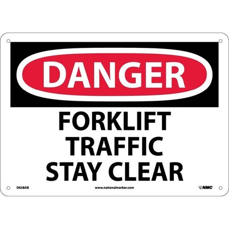 NMC D658RB OSHA Sign, Legend "DANGER - FORKLIFT TRAFFIC STAY CLEAR", 14" Length x 10" Height, Rigid Plastic, Black/Red on White