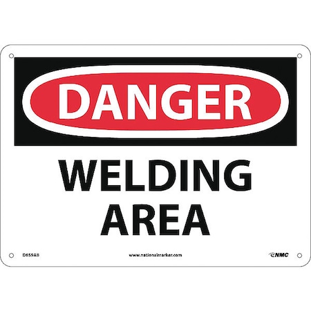 NMC D659AB OSHA Sign, Legend "DANGER - WELDING AREA", 14" Length x 10" Height, Aluminum, Black/Red on White