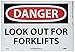 - Header "DANGER" and Legend "LOOK OUT FOR FORK LIFTS"