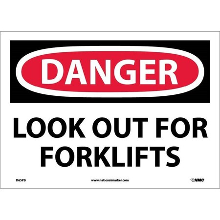 NMC D65PB OSHA Sign, Legend "DANGER - LOOK OUT FOR FORK LIFTS", 14" Length x 10" Height, Pressure Sensitive Vinyl, Black/Red on White
