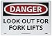 - Header "DANGER" and Legend "LOOK OUT FOR FORK LIFTS"
