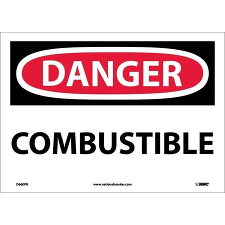 NMC D660AB OSHA Sign, Legend "DANGER - COMBUSTIBLE", 14" Length x 10" Height, Aluminum, Red/Black on White
