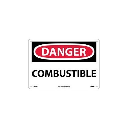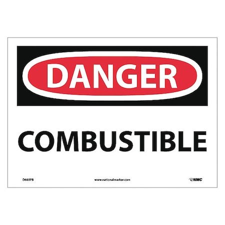 NMC D660PB OSHA Sign, Legend "DANGER - COMBUSTIBLE", 14" Length x 10" Height, Pressure Sensitive Vinyl, Red/Black on White