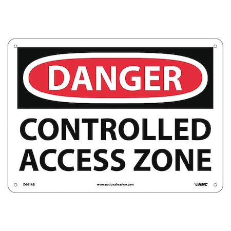 NMC D661AB DANGER - CONTROLLED ACCESS ZONE - 14 in. x 10 in. Aluminum Danger Signage with Black/White on White/Red