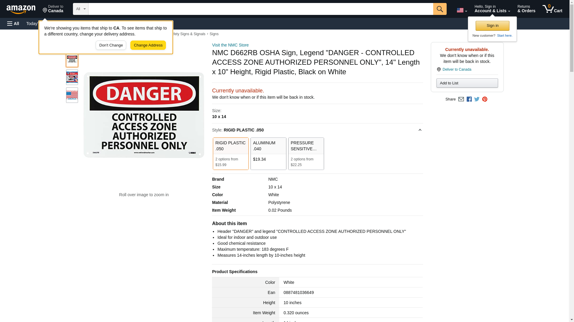 NMC D662RB OSHA Sign, Legend "DANGER - CONTROLLED ACCESS ZONE AUTHORIZED PERSONNEL ONLY", 14" Length x 10" Height, Rigid Plastic, Black on White