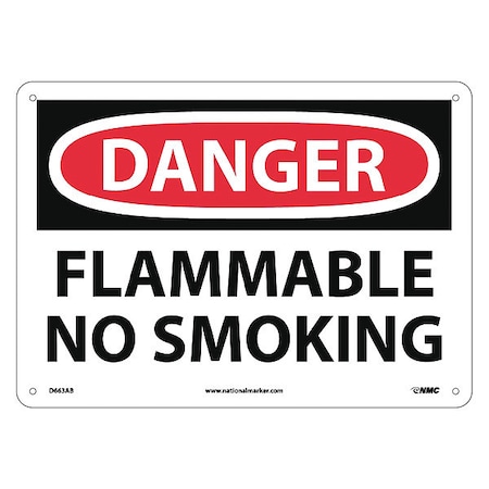 NMC D663AB OSHA Sign, Legend "DANGER - FLAMMABLE NO SMOKING", 14" Length x 10" Height, Aluminum, Black/Red on White