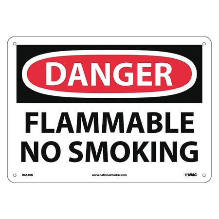 NMC D663RB OSHA Sign, Legend "DANGER - FLAMMABLE NO SMOKING", 14" Length x 10" Height, Rigid Plastic, Black/Red on White