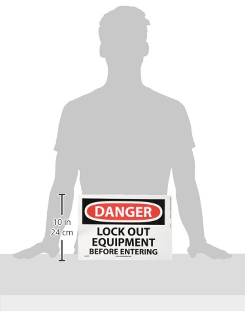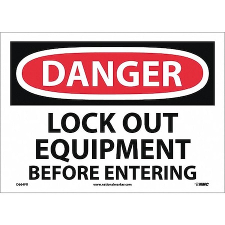 NMC D664PB OSHA Sign, Legend "DANGER - LOCK OUT EQUIPMENT BEFORE ENTERING", 14" Length x 10" Height, Pressure Sensitive Vinyl, Black/Red on White