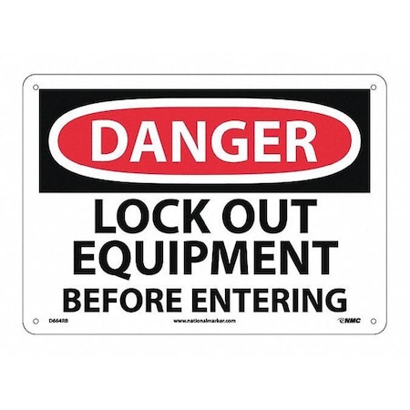 NMC D664RB OSHA Sign, Legend "DANGER - LOCK OUT EQUIPMENT BEFORE ENTERING", 14" Length x 10" Height, Rigid Plastic, Black/Red on White
