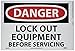 - Header "DANGER" and Legend "LOCK OUT EQUIPMENT BEFORE SERVICING"