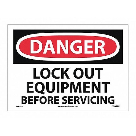 NMC D665PB OSHA Sign, Legend "DANGER - LOCK OUT EQUIPMENT BEFORE SERVICING", 14" Length x 10" Height, Pressure Sensitive Vinyl, Black/Red on White