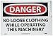 - Header "DANGER" and Legend "NO LOOSE CLOTHING WHILE OPERATING THIS MACHINERY"