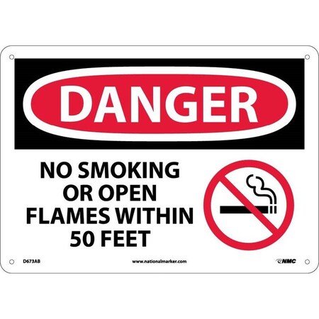 NMC D673PB DANGER - NO SMOKING WITHIN 50 FEET Sign - 14 in. x 0 in., Red/Black Text on White, PS Vinyl Danger Sign with Graphic