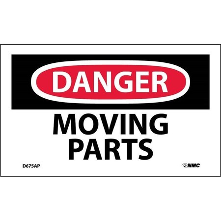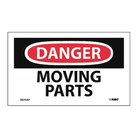 NMC D675AP OSHA Sign, Legend "DANGER - MOVING PARTS", 5" Length x 3" Height, Pressure Sensitive Vinyl, Black/Red on White (Pack of 5)