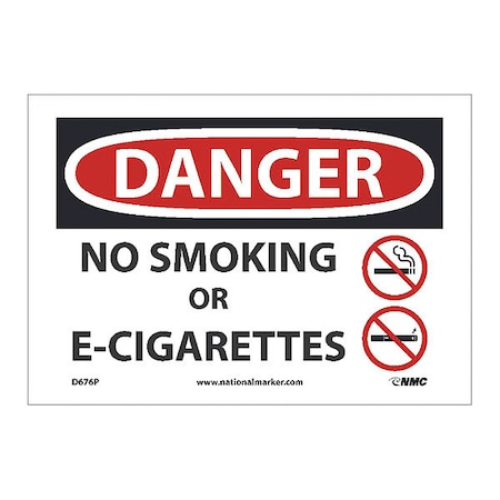 NMC D676P Danger - NO Smoking OR E-Cigarettes Sign - 10 in. x 7 in., Red/Black Text on White, PS Vinyl Danger Sign with Graphics