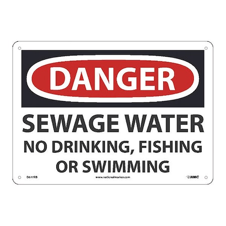 NMC D677RB Danger Sewage Water No Drinking, Fishing Or Swimming, 10X14, Rigid Plastic Sign