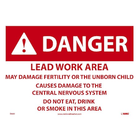 NMC D680, Paper Danger Sign, Lead Work Area" (10 Packs of 100 pcs)