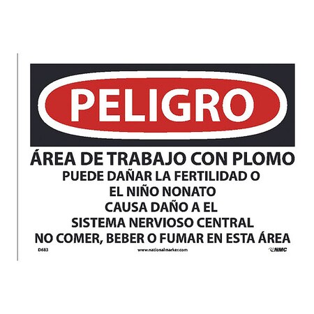 NMC D683 Danger Lead Work Area Sign, Spanish OSHA