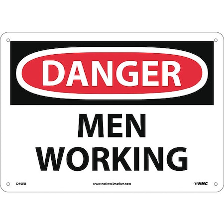 NMC D69RB OSHA Sign, Legend "DANGER - MEN WORKING", 14" Length x 10" Height, Rigid Plastic, Black/Red on White