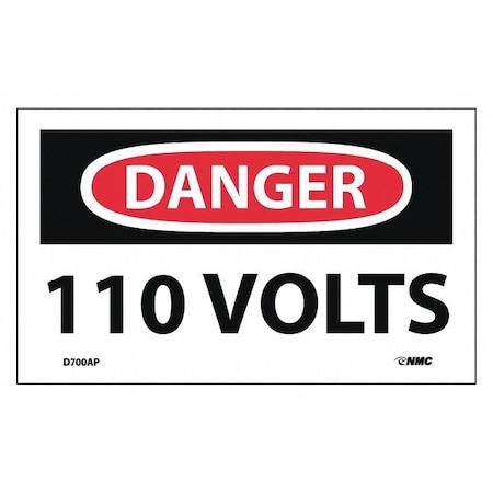 Danger 110 Volts Label, Pk5, D700AP
