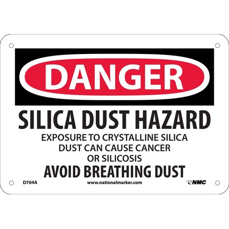 NMC D704A Danger, Silica Dust Hazard, 7X10, 040 Alum