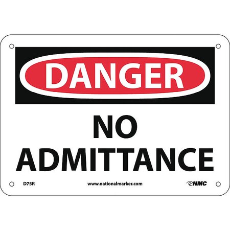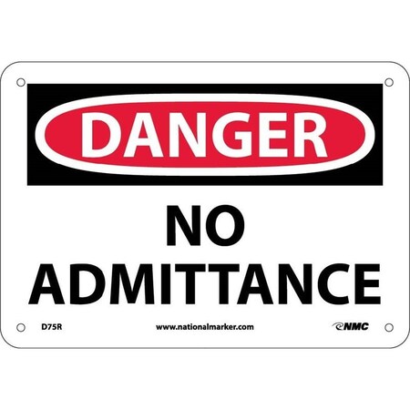NMC D75R DANGER - NO ADMITTANCE Sign - 10 in. x 7 in., Rigid Plastic Danger Signage with Black/Red on White