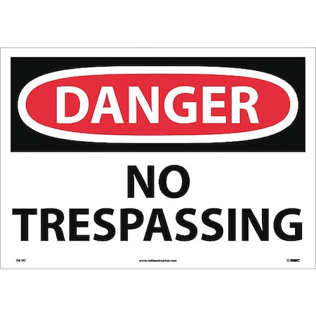 NMC D81PC OSHA Sign, Legend "DANGER - NO TRESPASSING", 20" Length x 14" Height, Pressure Sensitive Vinyl, Black/Red on White
