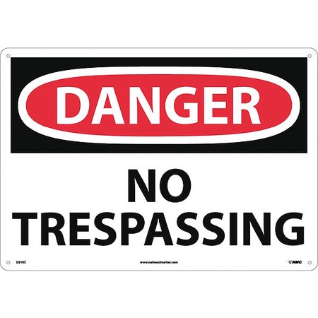 NMC D81RC OSHA Sign, Legend "DANGER - NO TRESPASSING", 20" Length x 14" Height, Rigid Plastic, Black/Red on White