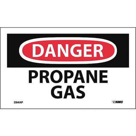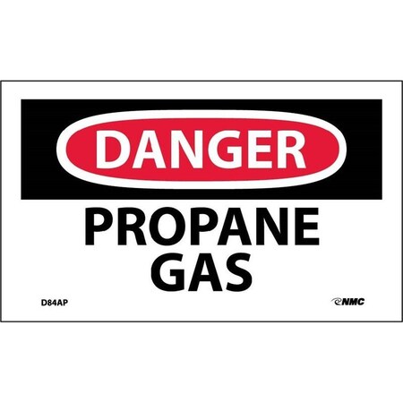 NMC D84AP OSHA Sign, Legend "DANGER - PROPANE GAS", 5" Length x 3" Height, Pressure Sensitive Vinyl, Black/Red on White (Pack of 5)