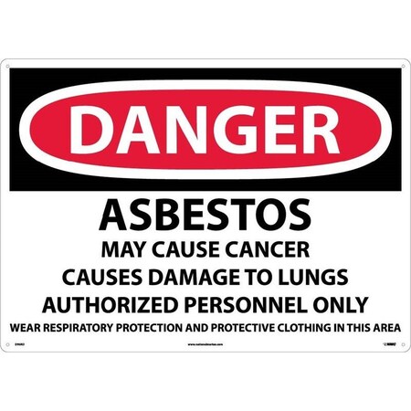 - Header "DANGER" and legend "ASBESTOS CANCER AND LUNG DISEASE HAZARD AUTHORIZED PERSONNEL ONLY RESPIRATORS AND PROTECTIVE CLOTHING ARE REQUIRED IN THIS AREA"