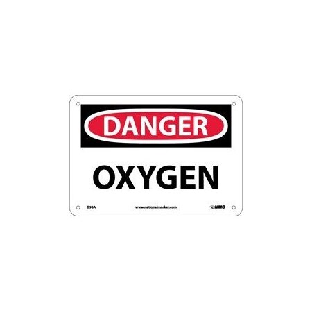 NMC D98R OSHA Sign, Legend "DANGER - OXYGEN", 10" Length x 7" Height, Rigid Plastic, Black/Red on White