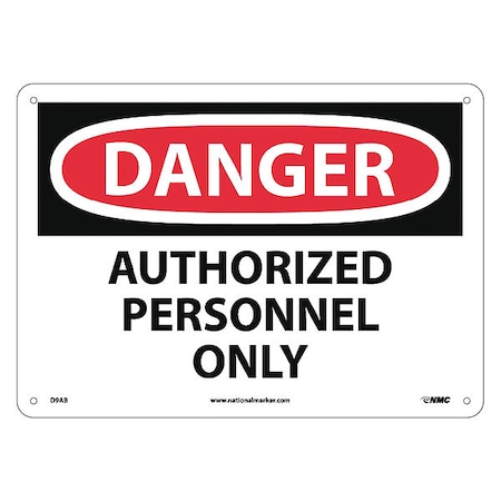 NMC D9AB OSHA Sign, "DANGER AUTHORIZED PERSONNEL ONLY", 14" Width x 10" Height, Aluminum, Black/Red On White