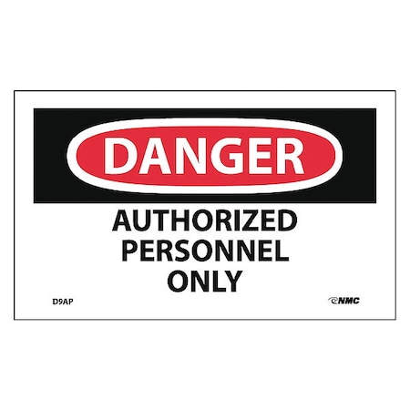 D9AP - Danger, Authorized Personnel Only, 3" X 5", Pressure Sensitive Vinyl, 5 per Pack