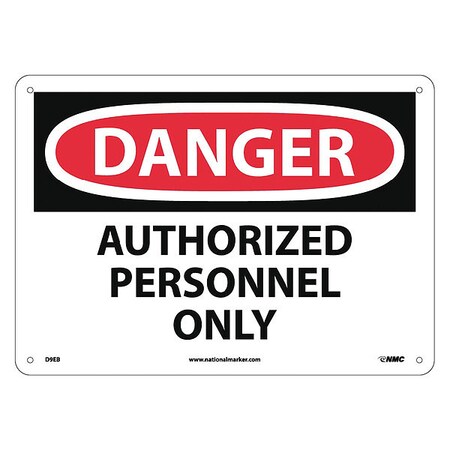 NMC D9EB OSHA Sign, Legend "DANGER - AUTHORIZED PERSONNEL ONLY", 14" Length x 10" Height, Fiberglass, Red/Black on White