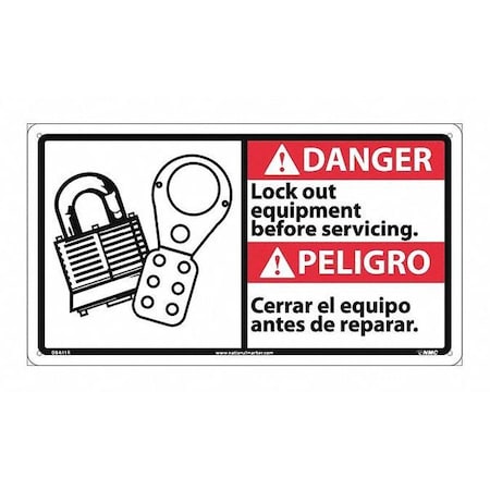 NMC DBA11R Bilingual OSHA Sign, Legend "DANGER - Do not enter. Authoried personnel only" with Graphic, 18" Length x 10" Height, Rigid Plastic, Black/Red on White