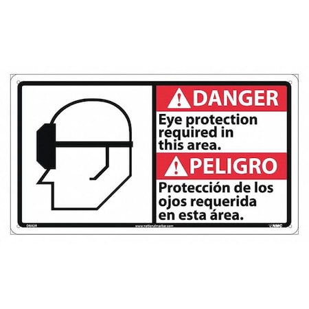 NMC DBA2R Bilingual OSHA Sign, Legend "DANGER - Eye protection required in this area" with Graphic, 18" Length x 10" Height, Rigid Plastic, Black/Red on White